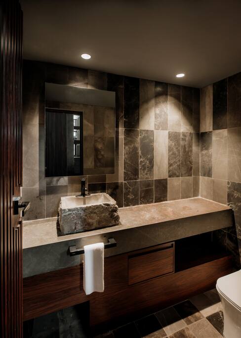 Your Exclusive Retreat in Luum Zama In the heart of Luum Zama, Aldea Zama’s most prestigious community, awaits an exceptional property that combines two luxury residences: the White Penthouse (5 bedrooms) and the Pink Residence (4 bedrooms). Together, these architectural gems offer a total of 9 private suites, each with ensuite bathroom, air conditioning, Smart TV, and private terraces in several rooms. Enjoy two private rooftop pools, all designed with the contemporary sophistication and curated artistry of Barneys NY. Perfect for hosting up to 24 guests, this property sets the stage for family reunions, getaways with friends, or intimate celebrations. Guests enjoy 24/7 concierge service, daily housekeeping, and exclusive access to premium amenities such as the yoga shala, a communal pool, and round-the-clock security. White Penthouse (5 Bedrooms · 14 Guests) • Master Suite #1: King bed, ensuite bathroom with tub, A/C, Smart TV, private balcony. • Luxury Suite #2: King bed, private bathroom, A/C, Smart TV, balcony. • Suite #3: Two Queen beds, private bathroom, A/C, Smart TV. • Suite #4: King bed, private bathroom, A/C, Smart TV. • Suite #5: Two Queen beds, private bathroom, A/C, Smart TV. Common Areas: Gourmet kitchen with SMEG appliances, indoor/outdoor dining, and rooftop with private pool and jungle views. Pink Residence (4 Bedrooms · 10 Guests) • Master Suite #1: Two Queen beds, spa bathroom with dual sinks and rain shower, private balcony, Smart TV. • Luxury Suite #2: One Queen bed, private bathroom with rain shower, balcony, Smart TV. • Suite #3: King bed, ensuite bathroom with spa shower and dual sinks, private balcony, Smart TV. • Suite #4: Queen bed, private bathroom, balcony, Smart TV. Common Areas: Fully equipped SMEG kitchen, rooftop with private pool and terrace, plus luminous interior living spaces. Key Amenities • Two private rooftops with pools and exclusive terraces. • 24/7 concierge service & daily housekeeping. • Gated community with round-the-clock security. • Access to yoga shala, communal pool, amphitheater & private parking. • High-speed WiFi and chef-ready kitchens, ideal for private dining experiences