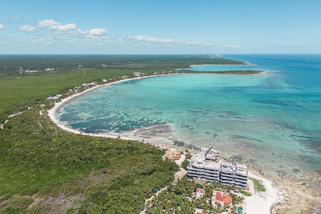 Experience modern luxury across two beachfront residences with six bedrooms in total. Filled with natural light, each offers elegant interiors, a chef’s kitchen, and laundry room — ideal for extended stays. Enjoy concierge service, daily housekeeping, beach club, restaurant, gym, kids club, yoga, and wellness ceremonies, all with private security. The perfect sanctuary to embrace Tulum’s vibrant energy and quiet moments.